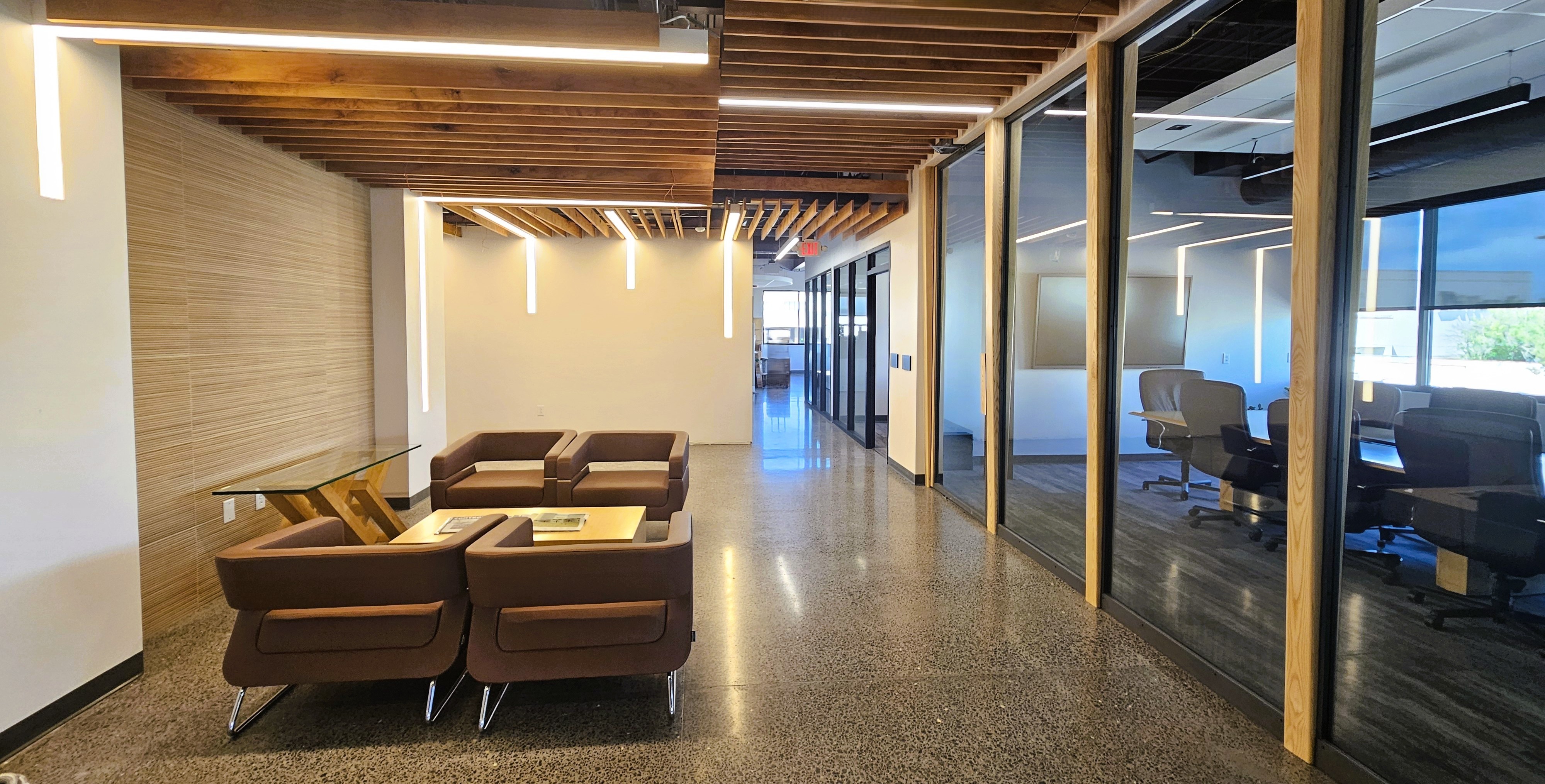 The 10,000sf office is abundant with natural light, and natural materials that provide an environment that is professional, sustainable and comfortable. The multi-modal collaboration spaces provide the area for spontaneous conversation to inspire collaboration and ideas.