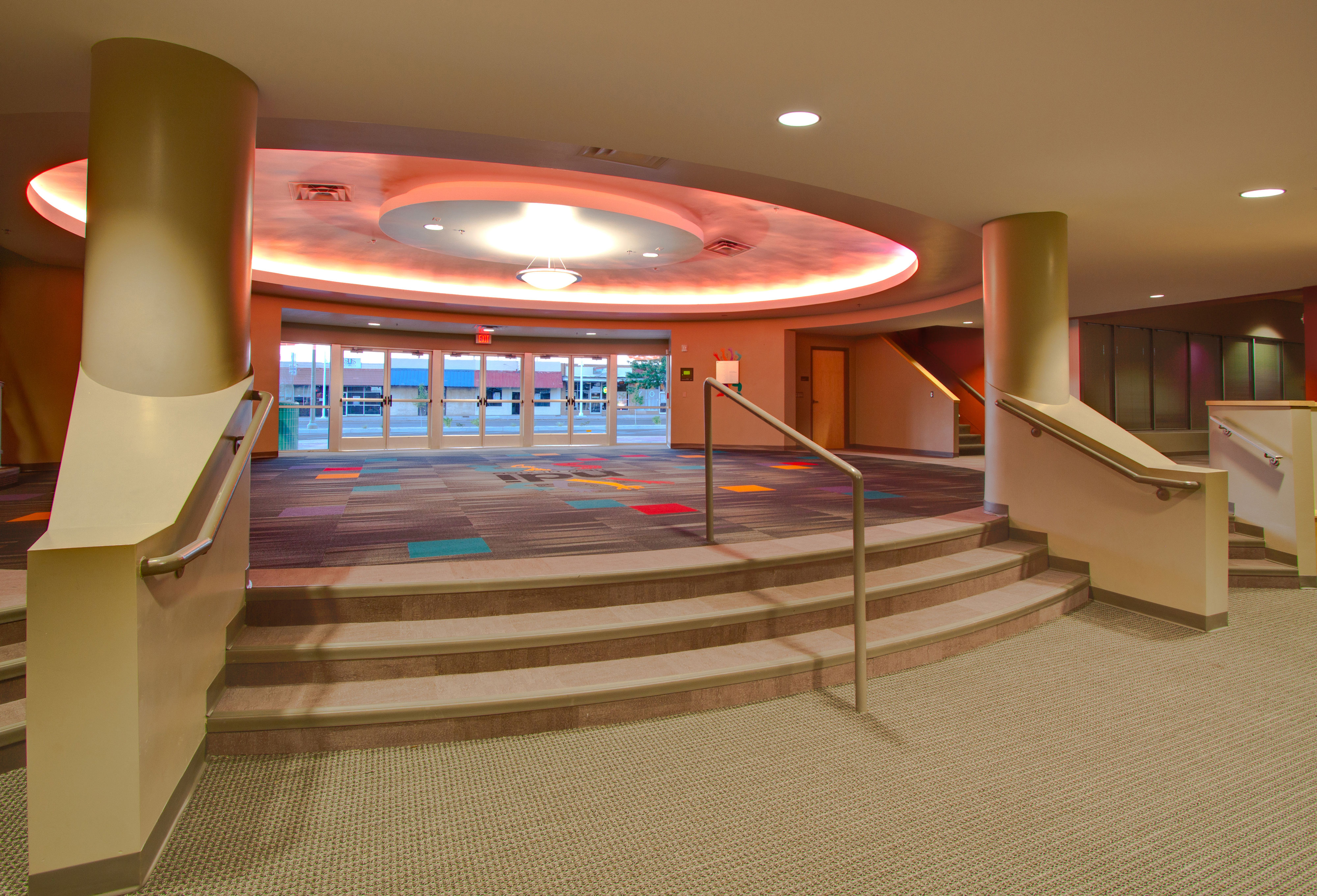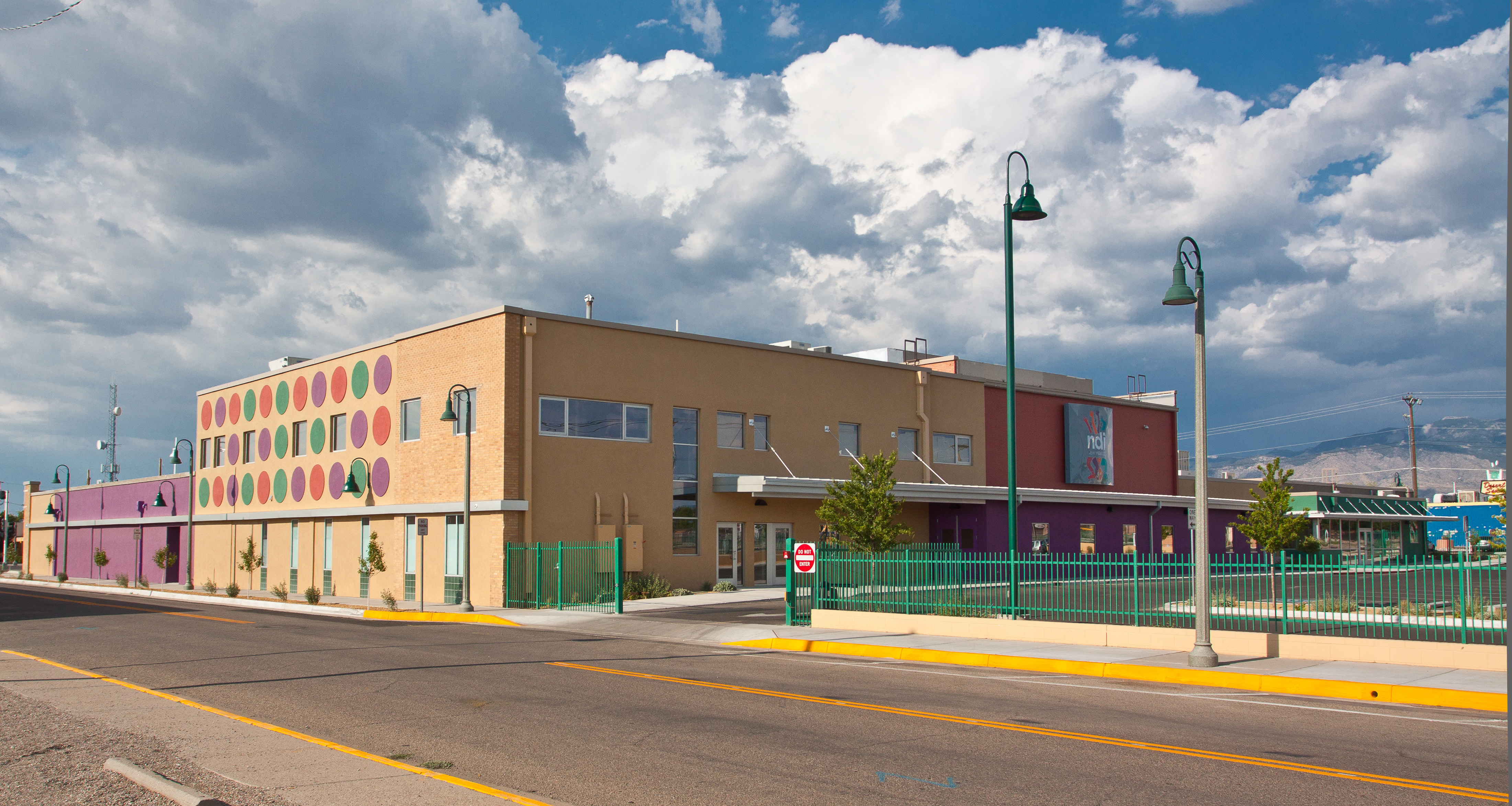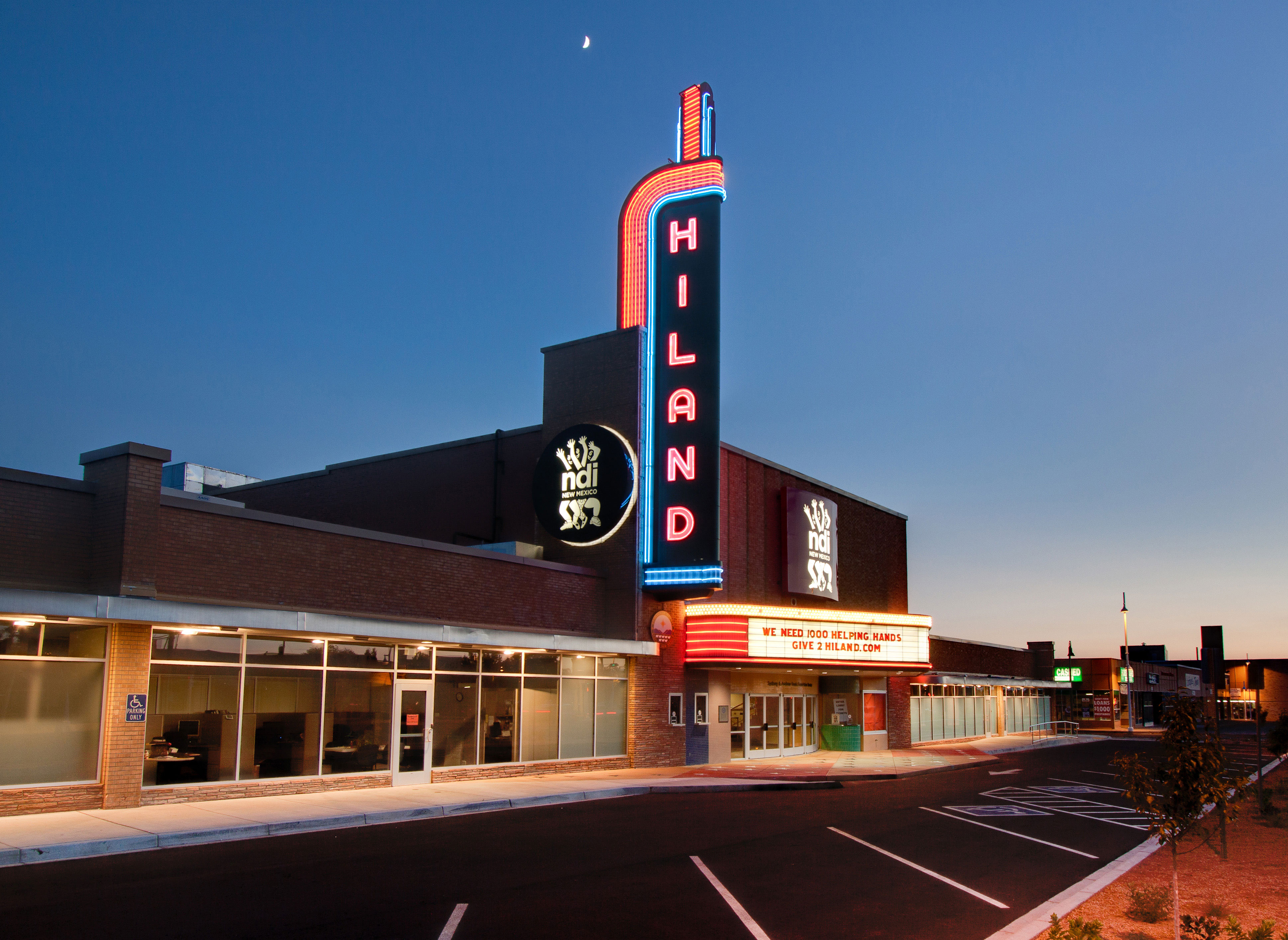 The historic Hiland Theater on Route 66 was renovated to provide an Albuquerque campus to serve this mission and while reviving the story of the original movie theater of the 1950s. This campus includes the renovation of the historic movie theater to a 600-seat live performance venue with sprung floor and stage systems, new dance studios, a refurbished historic lobby, an addition of backstage circulation, a scene shop, and administration areas and support spaces necessary to support the performances of over 500 children at times. The facility required a full renovation of all building systems as well as universal access upgrades.