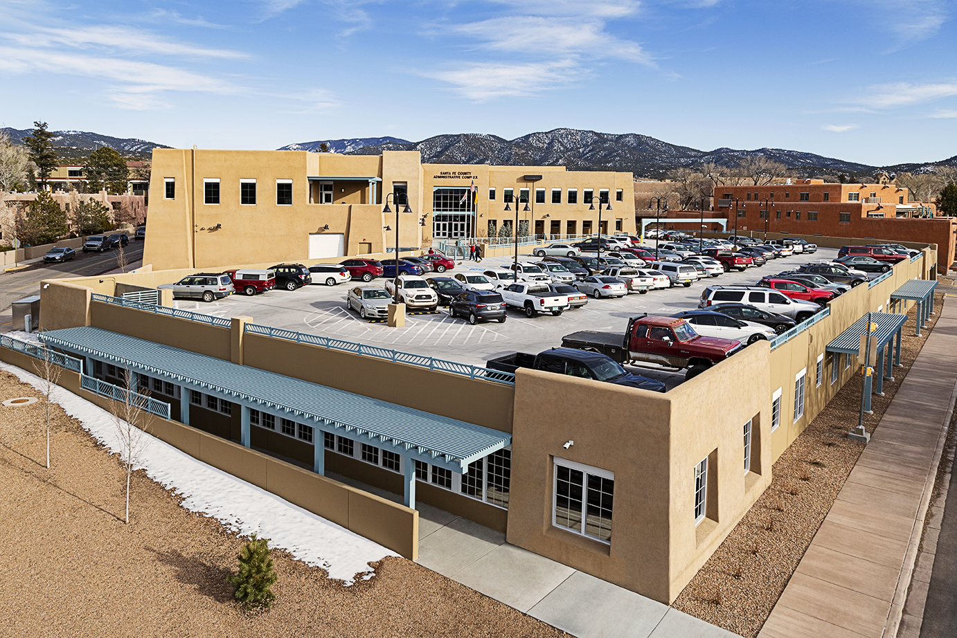 The new 62,000sf Administration building and a new parking structure design provides the opportunity to consolidate many Santa Fe County functions in a downtown campus. The new building design references the surrounding historic context, and creates a contextual yet contemporary identity for the new Administrative Complex.